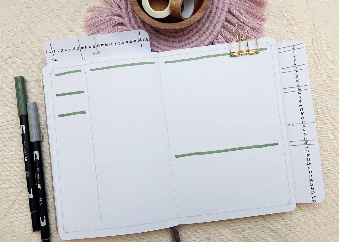 Der »grid spacing«-Guide dient als Hilfsmittel, damit du dich in deinem Punktrastersystem schneller zurechtfindest. So kannst du zum Beispiel die Abstände in deinem Wochenlayout innerhalb weniger Sekunden markieren, ohne vorher dein gesamtes Journal auszumessen.