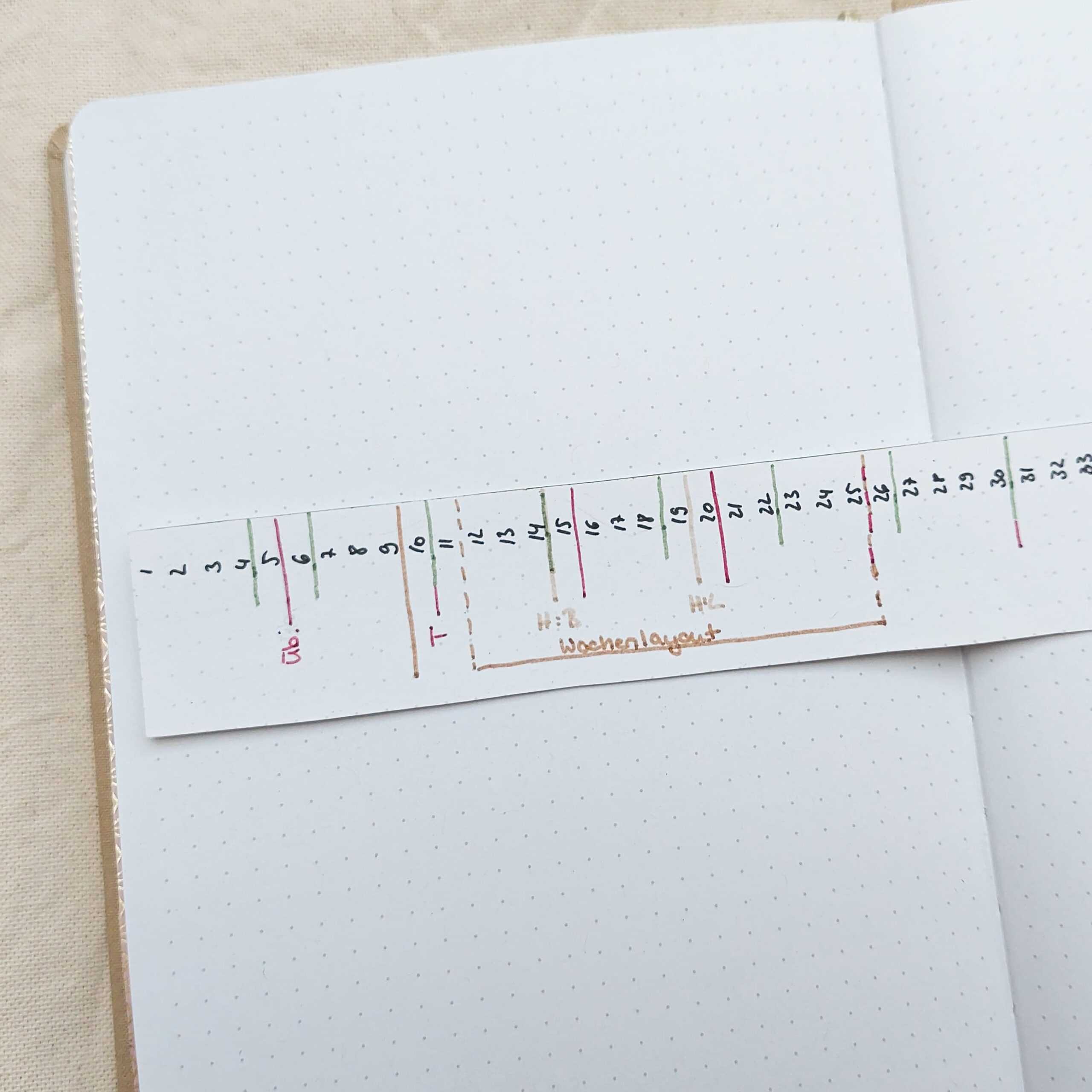Wenn du ein Journal mit dünnen Seiten hast, aber trotzdem die Lineal Variante nutzen möchtest, dann kannst du dein Linealstreifen auch einfach auf Bastelkarton aufkleben oder einlaminieren.